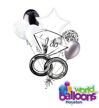 1 Super Shape Silver Ring, 1 Mylar heart/star18" (design may vary)  5 latex  assortment balloons 11in (design may vary)