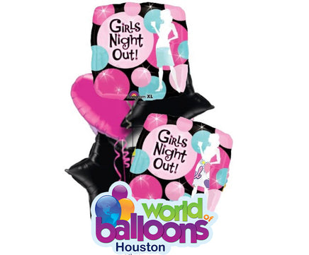 2 Mylar 18” girl night out, 3 Mylar 18” star/ heart black, dark pink (design and colors may vary) Enjoy decoration for your bachelorette party, ladies night party, elegant party,