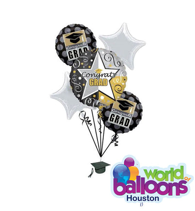 1 Jumbo Congrats Mylar (design may vary), 2 Mylar 18"(design may vary), 2 Mylar 18" stars