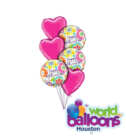 3 mylar balloons Mother's Day 18", 3 latex 11”