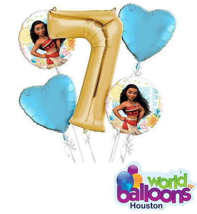 Moana Jumbo Number Balloon Bouquet 5 Pc
