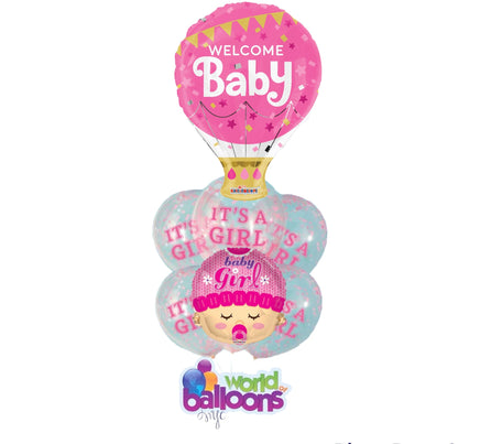 1 18” mylar shape, 5 confetti its a girl, 1 18” face its a girl, 7 Pieces (design may vary). NO HOSPITAL