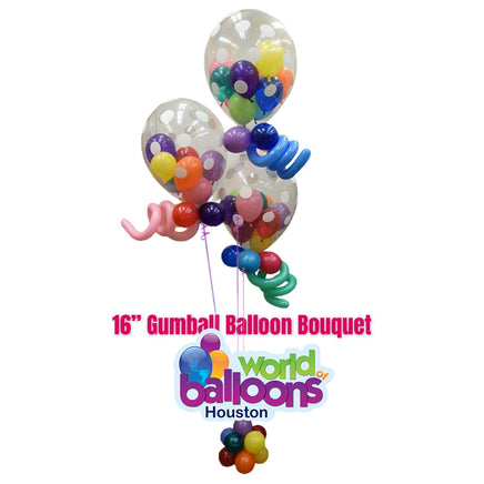 16inch Clear Gumball Balloon bouquet. Comes with ribbons and decorative balloon weight.