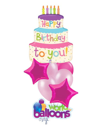 Happy Birthday Jumbo Cake Balloon Bouquet 8Pieces