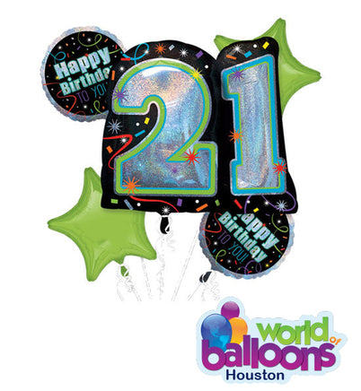 Brilliant 21st Bday Balloon Bouquet 5 Pc