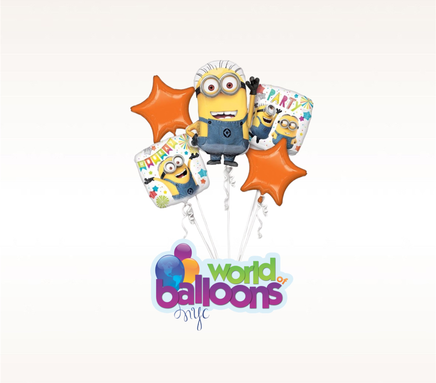 1 Minion Super Shape Mylar (design may vary), 4 Mylar 18" (design and colors may vary)