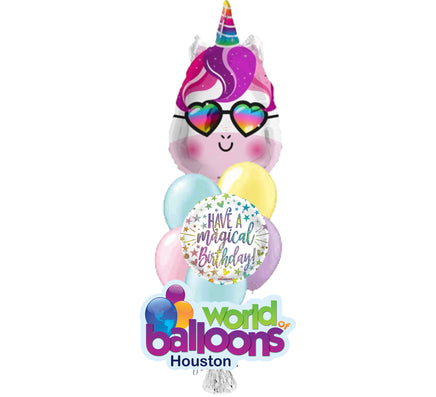 1 unicorn shape balloon 18”, 1 Magical Bday 18", 5 latex balloons 11” (design or color may vary)