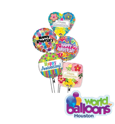 6 Mylar 18" Happy Anniversary. (design may vary)