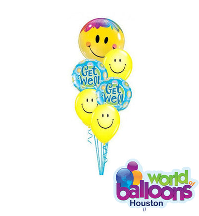 Happy Face Get Well Balloon Bouquet 6 Pc